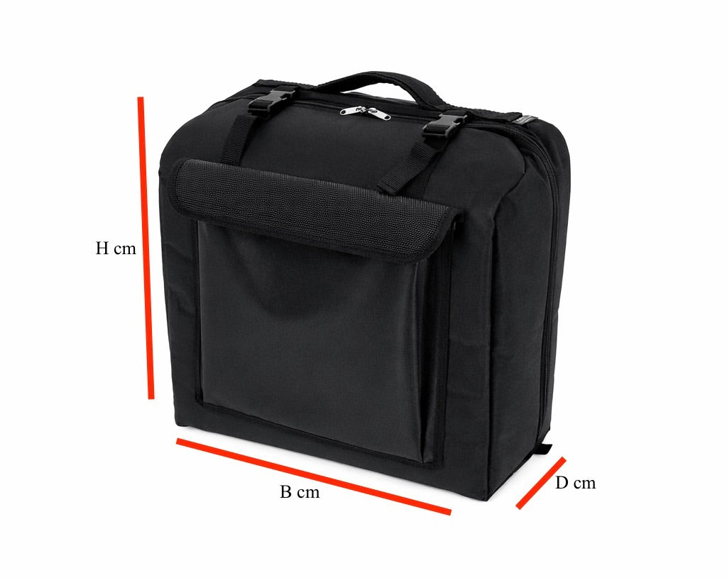 En god harmonika fortjener en god beskyttelse. Denne professionelle harmonikataske er udviklet til musikere, der ønsker maksimal sikkerhed og komfort under transport. Tasken fås i størrelser til harmonikaer med 12, 48, 72, 96 og 120 basser og er fremstillet i slidstærkt, vandafvisende nylon med forstærkede syninger og solid lynlås.